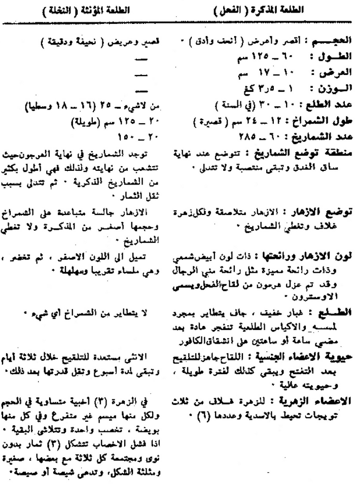 وللتمييز بين طلع الفحل وطلع الاناث في النخيل يمكن ذكر بعض النقاط التالية: