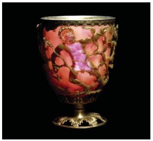 منذ آلاف السنين قصد البشر استخدام النانو دون أن يعرفوا هذا المصطلح، فاستخدمت في صناعة الصلب، والمطاط، والفلكنة، وكلها تمت اعتمادًا على خصائص عشوائية للأحجام الذرية لتلك المواد. ولا يمكن تحديد حقبة أو عصر بعينه لاستخدام هذه التقنية. فقد ذُكر أن صانعي الزجاج في العصور الوسطى كانوا يستخدمون حبيبات الذهب النانوية الغروية في تلوين الزجاج، ويعضد ذلك كأس الملك الروماني لايكورجوس (Lycurgus) الموجود في المتحف البريطاني منذ القرن الرابع الميلادي (انظر الشكلين رقم 18، و19)، حيث يحتوي على جسيمات من الذهب والفضة نانوية الحجم؛ لأنه يلحظ تغير لون الكأس من اللون الأخضر إلى اللون الأحمر الغامق عندما يتعرض لمصدر ضوئي (8).