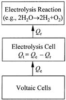 Figure 1.1. Input to and output from an electrolysis cell, according to Joule. The measured free heat Qt in the cell depends only on the input Qe from the voltaic cell and the output Qr to the electrolysis reaction. It is equal to the input Qe minus the output Qr, that is, Qt = Qe - Qr.