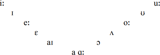 The inventory in (2) is fairly typical, except that it explicitly recognizes quality distinctions as well as length in every sub-system. Analyses with fewer members inevitably dephonemicise some regular and salient distinctions; those with more typically admit debatable separate subclasses, such as rhotic vowels (Veatch 1991). Beckford Wassink concludes that