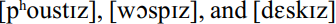 as the plurals of post, wasp, and desk, respectively, which were common in older African American speech, occurred only rarely in older Southern white speech. Forms such as