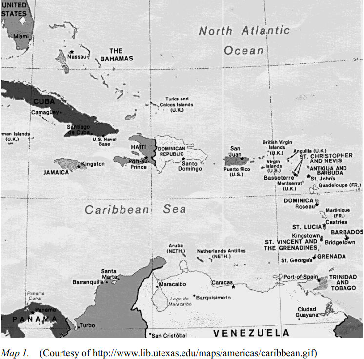 Holm (1989), Volume 3 of Wells (1982), Aceto and Williams (2003), various specific articles referenced below, and the author’s own notes from fieldwork whose results have not yet appeared in published articles. Map 1 shows the location of the islands discussed in the paper.