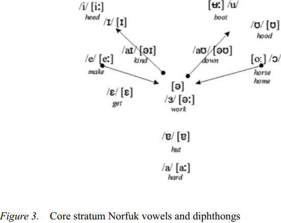 Our tentative proposal for a set of core stratum Norfuk vowels is summarized in Figure 3.