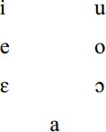 The 12 RP monophthongal vowels are reduced to 5 in the system of the most “Ghanaian” speakers, i.e. those whose English shows all possible mergers or substitutions of the BrE monophthong system. These vowels are /i, ε, a, ɔ, u/. To these are added the half-close /e/ and /o/, which result from the monophthongization of the BrE diphthongs /eɪ/ and /ou/, so that in total there are 7 GhE monophthongs, a system shared with the other West African Englishes: