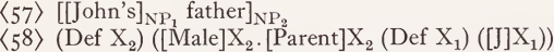 A similar proposal has recently been made by Fillmore (1968).7 If we abbreviate the syntactic function of an attributive NP of the type in question by the index G, the reading of ‘ father ’ can be given as: