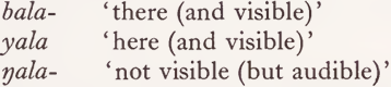 (1) a single system specifies ‘here’ or ‘there’ (there is no third ‘heard but not seen ’ feature for verb markers, as there is for noun markers):