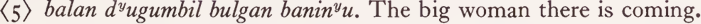 Or we can have a perfectly proper sentence involving just the noun, marker and adjective (there is no verb ‘to be’ in Dyirbal):