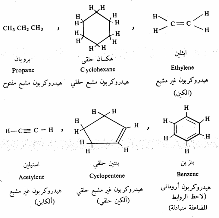(ب) الألكاينات Alkynes، وتحوي رابطة ثلاثية بين ذرتي كما تجدر الإشارة إلى أن النوع الأول والثاني الهيدروكربونات المشبعة وغير المشبعة) تسمى مركبات أليفاتية وقد تكون مركبات مفتوحة أو حلقية (مغلقة).