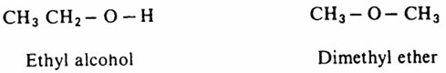 لذلك نجد أن خواصهما الكيميائية والفيزيائية مختلفة لاختلاف الصيغة البنائية. فمثلاً الكحول الايثيلي يتفاعل مع معدن الصوديوم مطلقاً غاز الهيدروجين. بينما ثنائي ميثل ايثر لا يتفاعل مع الصوديوم.