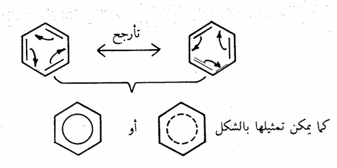اقتراح ككيولي : لقد اقترح العالم ككيولي (1865م) أن البنزين عبارة عن حلقة سداسية الأضلاع تتكون من ست ذرات كربون وست ذرات هيدروجين كل واحدة من ذرات الهيدروجين متصلة بذرة كربون، واقترح كذلك أن البنزين يحتوى على ثلاث روابط مضاعفة لكي تنطبق القاعدة التي تنص أن الكربون رباعي التكافؤ ، وأن تلك الروابط المضاعفة تتحرك إلى الأمام وإلى الخلف بشكل سريع كي تكون الأشكال الآتية التي لا يمكن فصلها