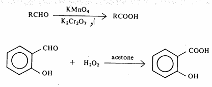 الأكسدة: تتأكسد الألدهيدات بسهولة وتتحول إلى الحموض الكربوكسيلية المطابقة في حين أن الكيتونات لا تتأكسد تحت نفس الظروف التي تتم عندها أكسدة الألدهيدات. ومن المواد المؤكسدة التي تستخدم لهذا الغرض البرمنجنات والكرومات وفوق الأكاسيد مثل فوق أكسيد الهيدروجين أو فوق أكسيد حمض الخل.