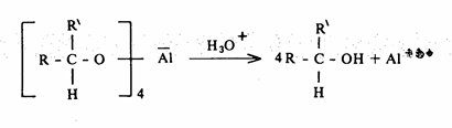 هذا ويتم في خطوة أخرى إضافة الماء المحمض الذي يقوم بدوره بتكسير الروابط الأكسجين والألومنيوم وكذلك إضافة البروتون إلى الأكسجين كي ينتج المركب الكحولي.