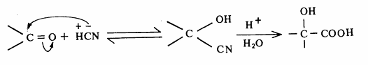 ويستخدم هذا التفاعل على نطاق واسع لتحضير «ألفا - هيدروكسي الحموض» وذلك من التحلل المائي لمركبات سيانوهيدرين التي