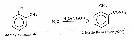 كما أن التحلل المائي المعتدل يؤدي إلى تكون الأميد المطابق، فمثلاً إضافة فوق أكسيد الهيدروجين إلى التحلل النتريلي هذا يفي بالغرض