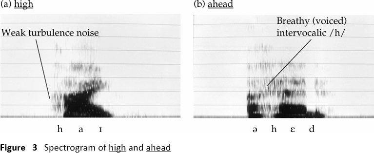 While it shows as a weak friction in high, it reveals itself as ‘breathy voice’ intervocalically in ahead.