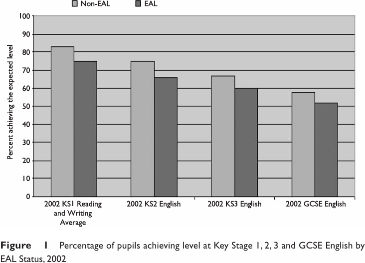 ■ A smaller proportion of EAL learners achieve expected levels at each Key Stage (Figure 1). However, the performance of EAL learners does vary across ethnic groups. (Bhattacharyya et al., 2003)