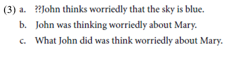 Our central question, then, is whether the cooccurrence of such core state verbs with manner adverbs indicates that these state verbs have a “Davidsonian” argument. To address this, we turn to a brief discussion of manner adverbials and review why a Davidsonian analysis of event verb manner modification is an appealing one.