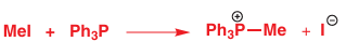 First observe what has happened: a new bond has been formed between the phosphorus atom and the methyl group, and the carbon–iodine bond has been broken. So, we need to draw the two reagents in such a way that a curly arrow can be used to represent this new bond. You’ll also need to make sure that you draw out all of the bonds that are actually involved in the reaction (too much detail is better than too little):