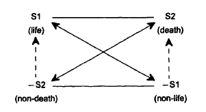 (2) SI and —SI are in a relation of contradiction: —SI negates SI. S2 and — S2 are also in a relation of contradiction: — S2 negates S2.