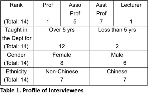 Table 1 below shows the information of the interviewees.