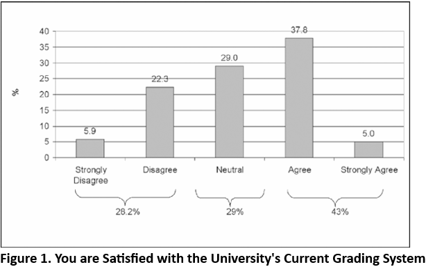 This part will first record the perspectives of teaching staff and students towards the University's NRA system, followed by the teaching staff's actual practice when grading. From the questionnaire survey, it was found that over 40% of the respondents were satisfied with the University's NRA system (Figure 1).