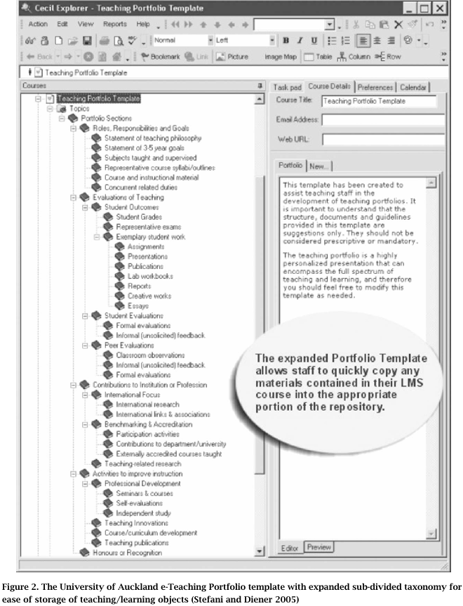 (While it is not the intention to provide full details on the proposed structure of the Teaching Portfolio, Figures 1 and 2 show the template currently being piloted. Further details of the structure and the supporting Learning Management System can be found
