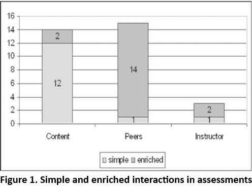 Also shown in Figure 1 are the differences in the nature of interactions that students find in the different types of website. Enriched interactions were comparatively fewer in number among assessments that were of the interaction-with-content and interaction-with-instructors types.