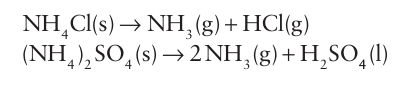 produces 7 mol of gaseous molecules, corresponding to an increase in volume from about approximately 200 cm3 to about 140 dm3, a factor of 700. This feature leads to the use of am monium nitrate as an explosive and nitrate fertilizers are often mixed with materials such as calcium carbonate or ammonium sulfate to make them more stable. Ammonium sulfate and the ammonium hydrogenphosphates, NH4H2 PO4 and (NH4)2HPO4, are also used as fertilizers because phosphate is a plant nutrient. Ammonium perchlorate is used as the oxidizing agent in solid fuel rocket propellants.