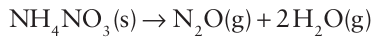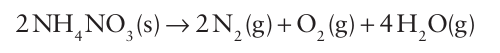 When ammonium nitrate is heated strongly or detonated, the decomposition of 2 mol NH4NO3 (s) in the reaction
