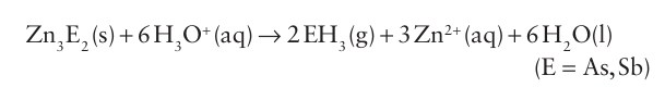 Arsane and stibane may be prepared by the protolysis of com pounds that contain an electropositive metal in combination with arsenic or antimony: