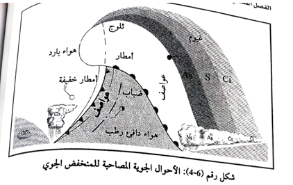 إن المنخفضات الجوية أنظمة كبيرة تؤثر على مساحات واسعة بامتداد (2500-1000 كم) ، ويختلف تأثيرها من منطقة إلى منطقة حسب موقعهـا مـن المنخفض الجوي وتقسم المساحة الواقعة تحت تأثير المنخفض إلى ثلاثة مناطق رئيسية هي :