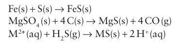 Key point: Monatomic and polyatomic sulfide ions are known as discrete anions and as ligands. Many metals occur naturally as their sulfide ores. The ores are roasted in air to form the oxide or the water-soluble sulfate, from which the metals are extracted. The sulfides can be pre pared in the laboratory or industry by a number of routes; direct combination of the elements, reduction of a sulfate, or precipitation of an insoluble sulfide from solution by addition of H2S: