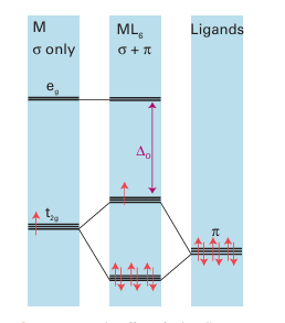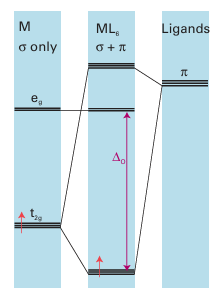 Figure 20.21 Ligands that act as π acceptors increase ∆O. Only the π orbitals of the ligand are shown.
