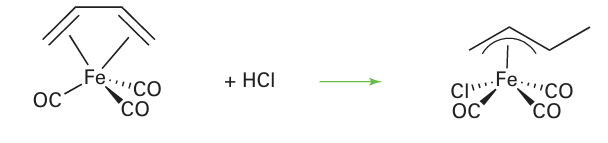 In complexes where the metal centre is not protonated directly, the protonation of a buta diene ligand can lead to an η3-allyl complex: