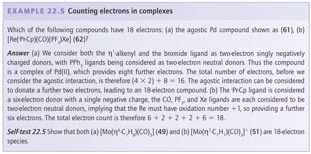 In the bent arrangement (68), NO is considered to behave as NO, again donating two electrons. In many complexes, NO can change its coordination mode; in effect, moving from the linear to the bent mode reduces the number of electrons on the metal by 2.