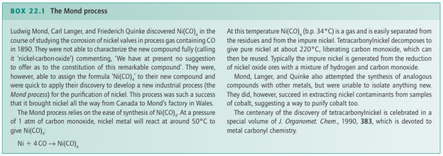 Key points: Most metal carbonyls can be reduced to metal carbonylates; some metal carbonyls disproportionate in the presence of a strongly basic ligand, producing the ligated cation and a carbonylate anion; metal carbonyls are susceptible to oxidation by air; metal-metal bonds undergo oxidative cleavage.