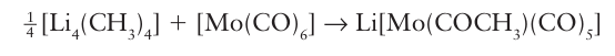 The attachment of an electrophile to the oxygen of a CO ligand, as in the structure on the right of this equation, promotes migratory insertion reactions (Section 22.24) and C O cleavage reactions. The ability of some alkyl-substituted metal carbonyls to undergo a migratory insertion reaction to give acyl ligands, (CO)R, is discussed in detail in Section 22.24.