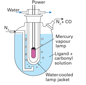 Figure 22.16 Apparatus for photochemical ligand substitution of metal carbonyls.