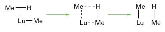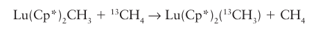 This reaction can be carried out in deuterated cyclohexane with no evidence for activation of the cyclohexane C D bond, presumably because cyclohexane is too bulky to gain access to the Lu atom. A mechanism involving a four-centre -bond metathesis-type inter mediate has been proposed (Section 22.23):
