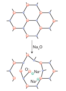 Figure 24.34 The role of a modifier is to introduce O2- ions and cations that disrupt the lattice.