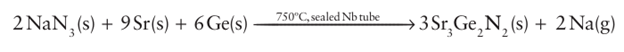Key points: Complex metal nitrides and oxide nitrides are materials containing the N3 anion; many new compounds of this type have recently been synthesized. Simple metal nitrides of main-group elements, such as AlN, GaN, and Li3N, have been known for decades. Many of the recent advances in nitride chemistry have centred on d-metal compounds and complex nitrides. That nitrides are less common than oxides stem, in part, from the high enthalpy of formation of N3 compared with that of O2. Further-more, because many nitrides are sensitive to oxygen and water, their synthesis and handling are problematic. Some simple metal nitrides can be obtained by the direct reaction of the elements, for example Li3N is obtained by heating lithium in a stream of nitrogen at 400ºC. The instability of sodium nitride allows sodium azide to be used as a nitriding agent: