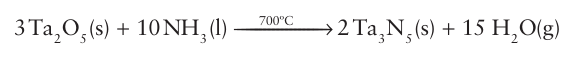 The ammonolysis of oxides (the dehydrogenation of NH3 by oxides with the formation of water as a byproduct) provides a convenient route to some nitrides. For instance, tantalum nitride can be obtained by heating tantalum pentoxide in a fast-flowing stream of ammonia:
