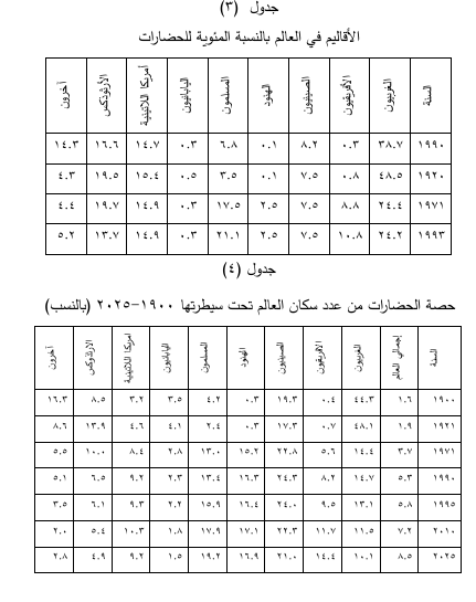 كما أن عدد السكان أيضاً تغير ، ففي عام 1900 شكل الغرب (30%) من سكان العالم ، وسيطرت الحكومات الأوربية على ما يقارب (405) من سكان العالم ، ثم إلى (48%) عام 1920 ، بينما في عام 1993 تراجع العدد إلى اقل من (13%) ، وبالنظر إلى إجمالي سكان العالم جاء الغرب بالمرتبة الرابعة بعد الحضارات الصينية والإسلامية والهندية.
