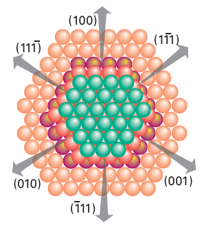Figure 26.18 Some possible metal crystal planes that might be exposed on a metal surface to a reactive gas. The planes labelled [1–11], [11–1], etc. are hexagonally close- packed and the planes represented by [100], [010], etc. have square arrays of atoms.