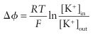 Two important issues arise in the context of compartmentalization. First, the process requires energy because ions must be pumped against an adverse gradient of chemical potential. However, once a concentration difference has been established, there is a difference in electrical potential across the membrane dividing the two regions. For instance, if the concentrations of K ions on either side of a membrane are [K+]in and [K+]out, then the