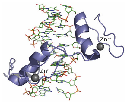 Figure 27.10 A pair of zinc fingers interacting with a section of DNA.