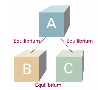 Fig. 1.3 The experience summarized by the Zeroth Law of thermodynamics is that, if an object A is in thermal equilibrium with B and B is in thermal equilibrium with C, then C is in thermal equilibrium with A.