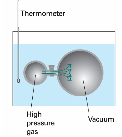 Fig. 2.26 A schematic diagram of the apparatus used by Joule in an attempt to measure the change in internal energy when a gas expands isothermally. The heat absorbed by the gas is proportional to the change in temperature of the bath.
