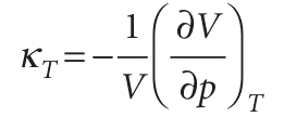 and physically is the fractional change in volume that accompanies a rise in temperature. A large value of α means that the volume of the sample responds strongly to changes in temperature. Table 2.8 lists some experimental values of α and of the isothermal compressibility, κT (kappa), which is defined as