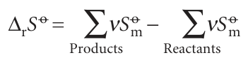 In this expression, each term is weighted by the appropriate stoichiometric coefficient. Standard reaction entropies are likely to be positive if there is a net formation of gas in a reaction, and are likely to be negative if there is a net consumption of gas.